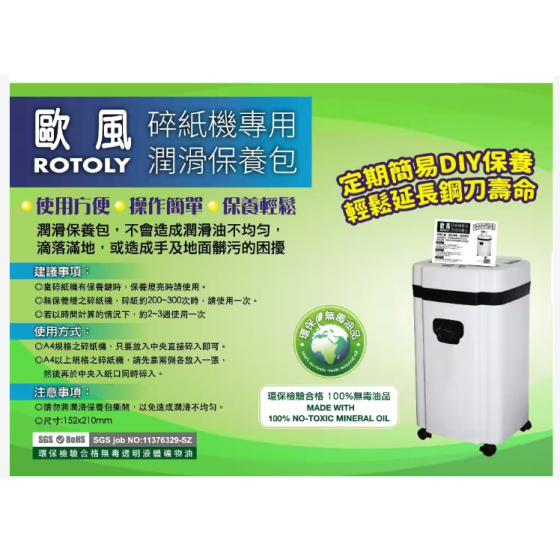 【ROTOLY 歐風】碎紙機專用潤滑保養包(12片入)